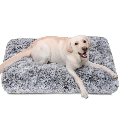 Jaspuriea Large Dog Bed Washable Dog Crate Mattress Calming Fluffy Anti Anxiety Dog Beds Deluxe Plush Dog Mat with Anti-Slip Bottom,105x70x10cm