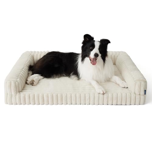 Bedsure Orthopedic Dog Beds Large - 106x76x18cm Waterproof Memory Foam Dog Sofa with Sides, Non-Slip Bottom and Egg-Crate Foam Large Pet Couch Sofa with Washable Removable Corduroy Cover, cream