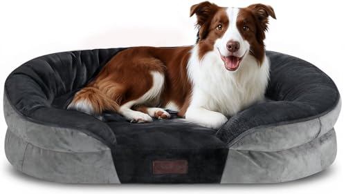 Heymamba Large Dog Bed with Zipper to Easily Remove the Cover, Dog Beds with 1.8KG Particle Memory Sponge to Support Joint, XL Dog Beds Large for Hound/Border Collie/Golden Retriever, 78x63x23cm