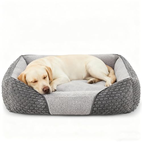 JOEJOY XL Dog Bed Washable Waterproof No Dust No Odor Fluff 89x64x23cm, Extra Large Grey, Dog Beds Extra Large for Labrador/Golden Retriever