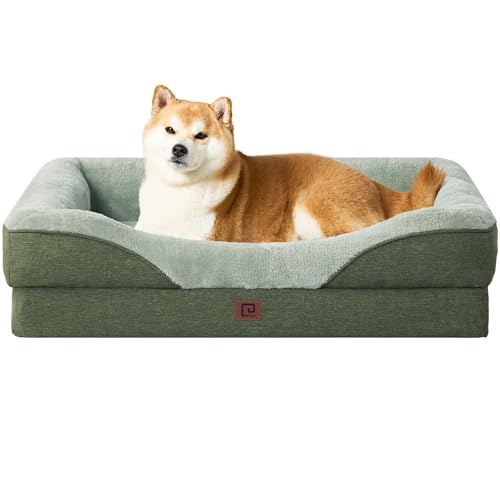 EHEYCIGA Memory Foam Dog Beds Large, Orthopedic Dog Beds Sofa with Sides and Waterproof Liner, Pet Couch with Washable Removable Cover and Non-Slip Bottom, 91x68x17cm, Green