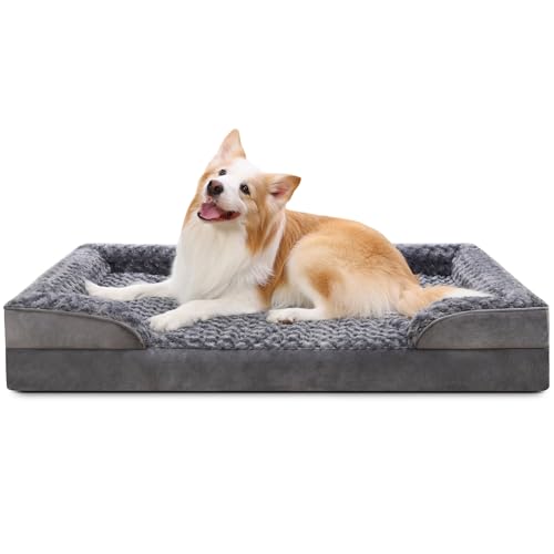 Bedsure Orthopedic Dog Beds Large - 96x71cm Extra Thick Supportive Large Dogs Sofa with Waterproof Washable Cover, L Plus Pet Bed Sofa with Soft Plush Sherpa and Nonskid Bottom, Dark Grey