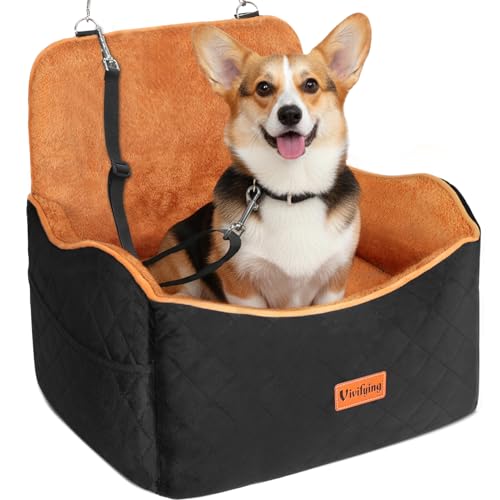 Vivifying Dog Car Seat, Memory Foam Dog Booster Seat for Small&Medium Up to 16KG, Detachable and Washable, 10CM Height Elevated with Storage Pockets (Black&Brown)