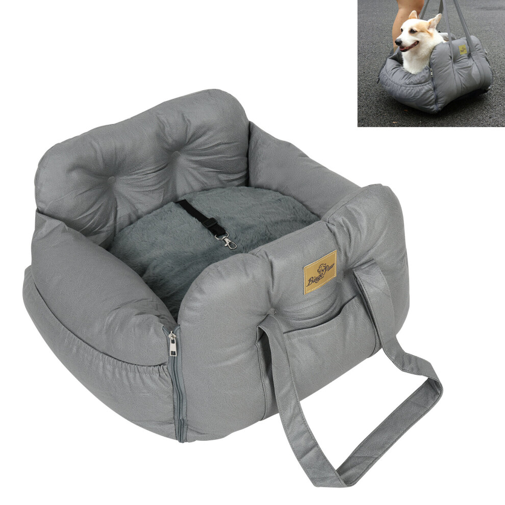 GoBuyer Waterproof Pet Dog Car Seat Booster Carrier Box and Basket with Seat Belt Harness Restraint for Puppy Cat Travel (Grey, Standard 40x40cm)