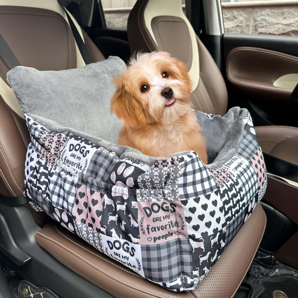 Center Console Dog Car Seat for Small Dogs,Small Dog Car Booster Seat Washable Foldable with Safe Protection Hooks Adjustable Straps and Storage Pocket Pet Up to 18lbs