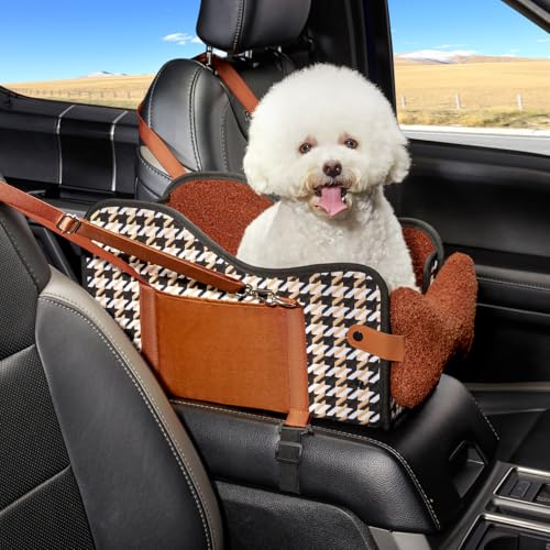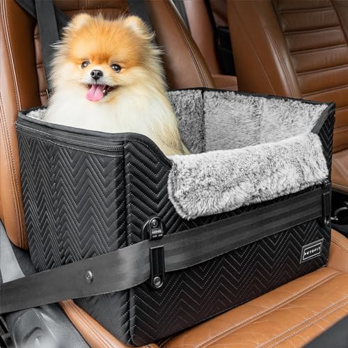 PETSFIT Dog Car Seat for Small Dogs with Safety Belt Attachment Buckles, Waterproof PU Leather Dog Booster Car Seat with Adjustable Height Dog Seat for Pets Under 11 kg