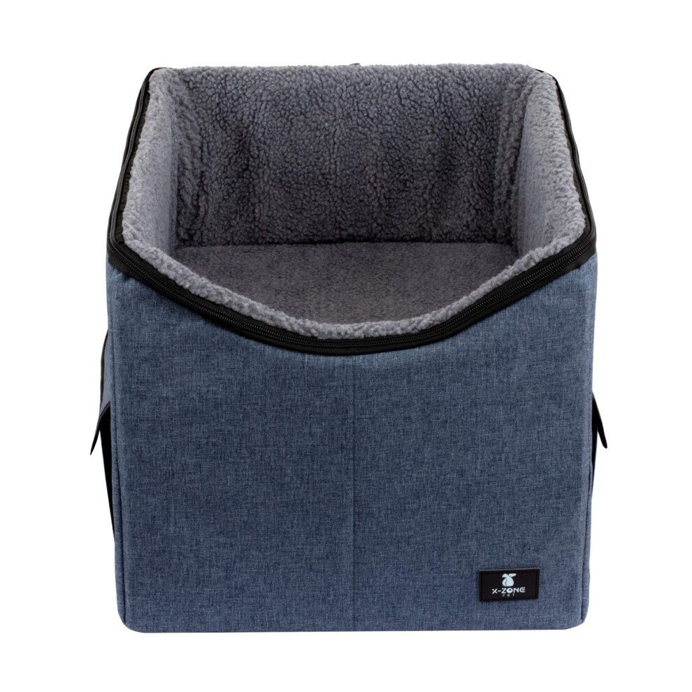 X-ZONE PET Dog Booster Car Seat/Pet Bed at Home, with Pockets and Carrying case?Easy Storage and Portable?Medium, Blue