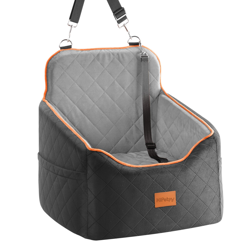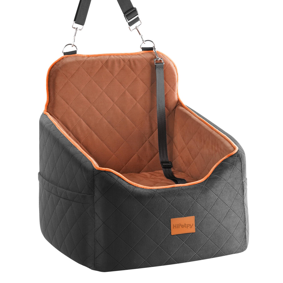 HiPetpy Dog Car Seat for Small Dog Booster Seat for Dogs Under 30lb Elevated Pet Seat with Pockets Anti-Slip Bed for Car Perfect for Front & Back