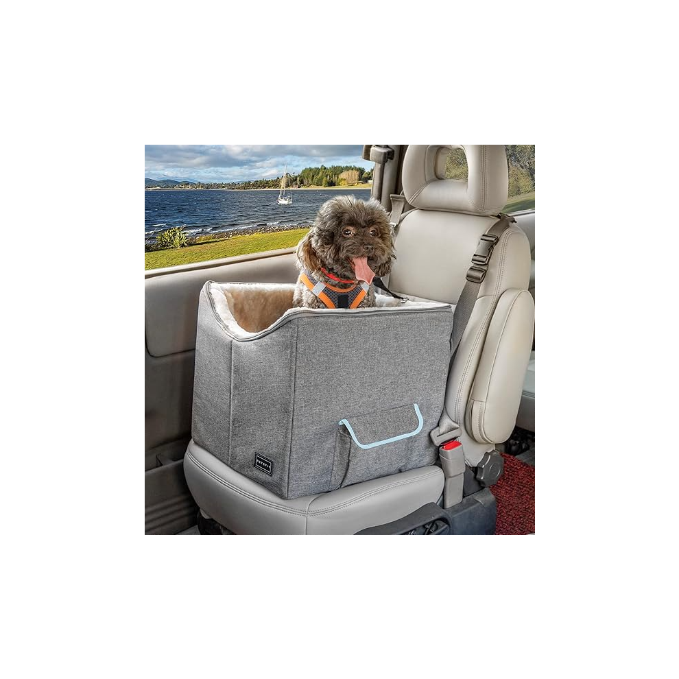 Vivifying Small Dog car seat, Dog Booster Seat Memory Foam, Elevated, Washable, Front/Rear Use Under 10KG(Grey)