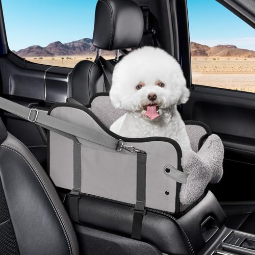 PETSFIT Dog Car Seat with Safety Belt Attachment Buckles, Small Dog Booster Car Seat with Adjustable Height Dog Seat for Cars Front and Back Seat Grey
