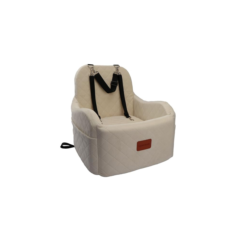Lesure Dog Car Seat for Medium Dog - Waterproof Dog Booster Seat for Car with Storage Pockets, Clip-On Safety Leash and Chopped Foam Filling, Small Pets Travel Carrier Bed, 58x56x33cm, Beige