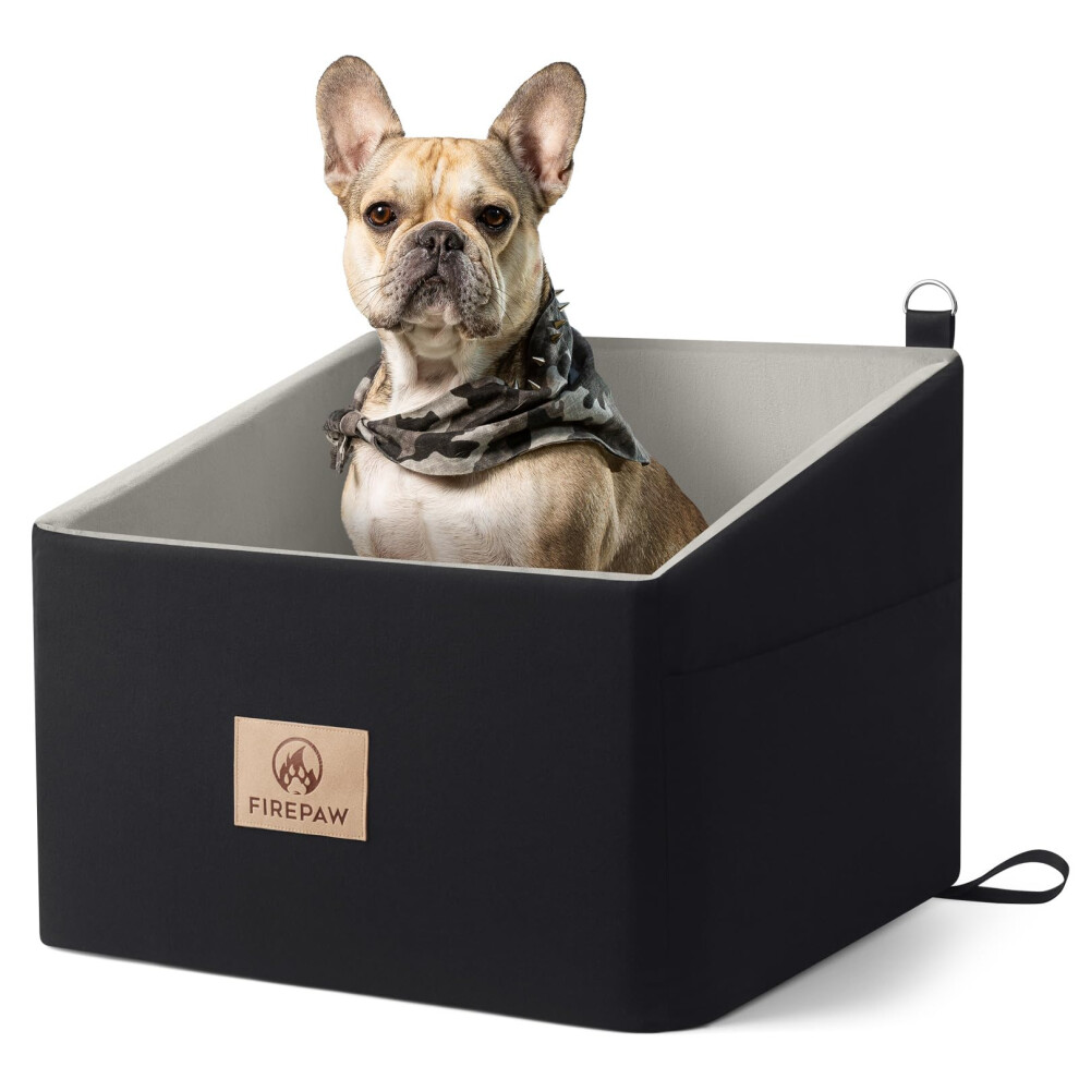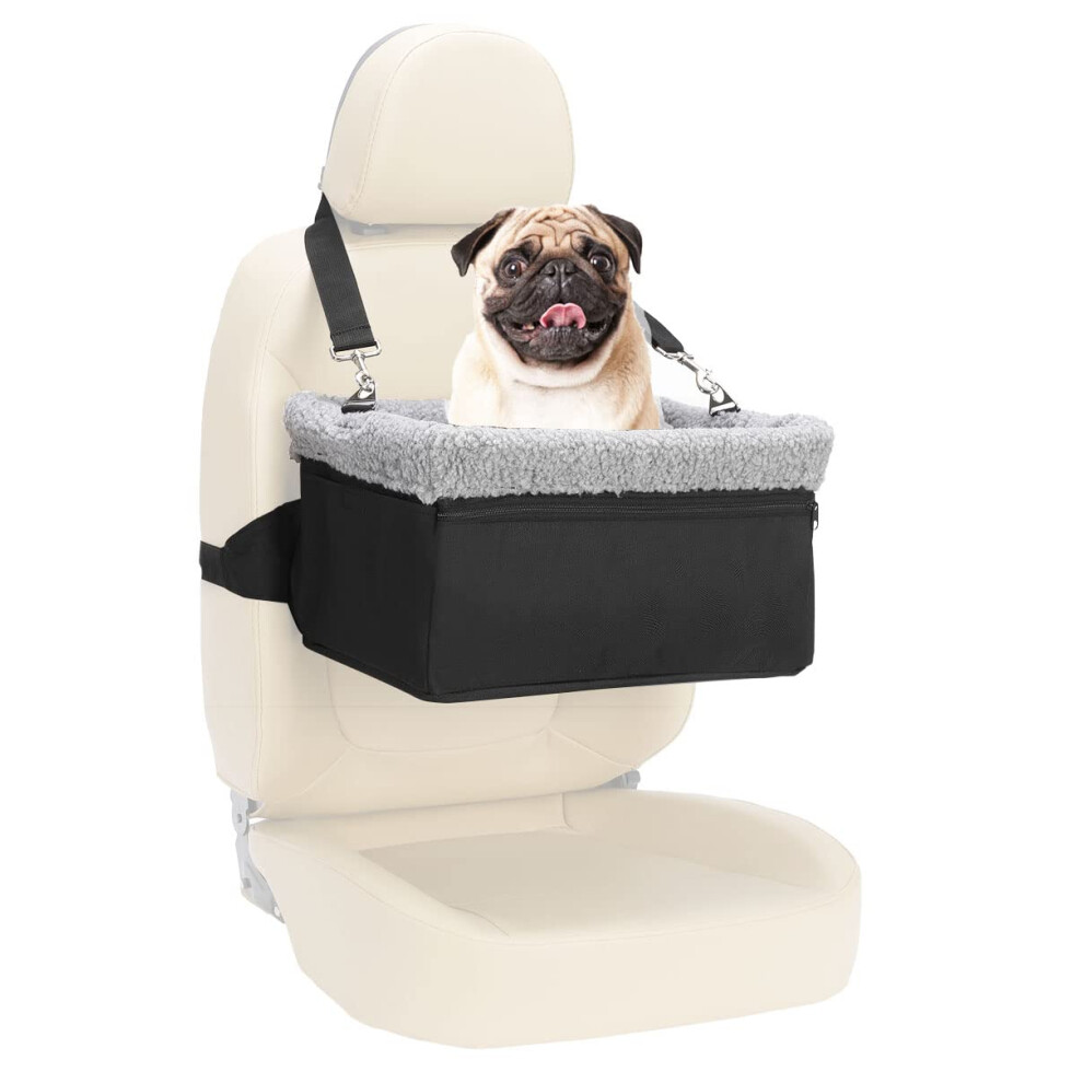 PETSFIT Dog Car Seats for Small Dogs, Soft Foam Dog Booster Seat with Patented Safety Buckles, Storage Pockets and Detachable Clip-On Safety Leash for Medium Pets Under 13 KG (Black)