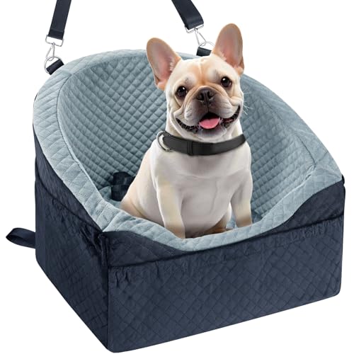 JOEJOY Small Dog Car Seat, Memory Foam Dog Booster Seat with Thick Cushion, Washable Dog Travel Bed for Medium Dogs with Detachable Cover and Storage Pockets, Adjustable Straps