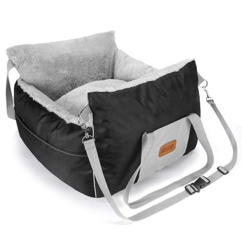GL GLENSLAVE Dog Car Seat for Small/Medium Dogs Under 35lbs, Memory Foam Dog Booster Seats,Detachable and Washable Traval Pet Car Seat, Dogs Bed with 2 Safety Belts (Balck/Grey)
