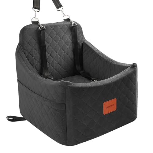 INDYBUD Dog Car Seat for Small Medium Dogs,Detachable Washable Dog Booster Seat Under 35lbs, Pet Car Seat Travel Bed with Storage Pockets and Safety Belt (Black/Grey, Medium)