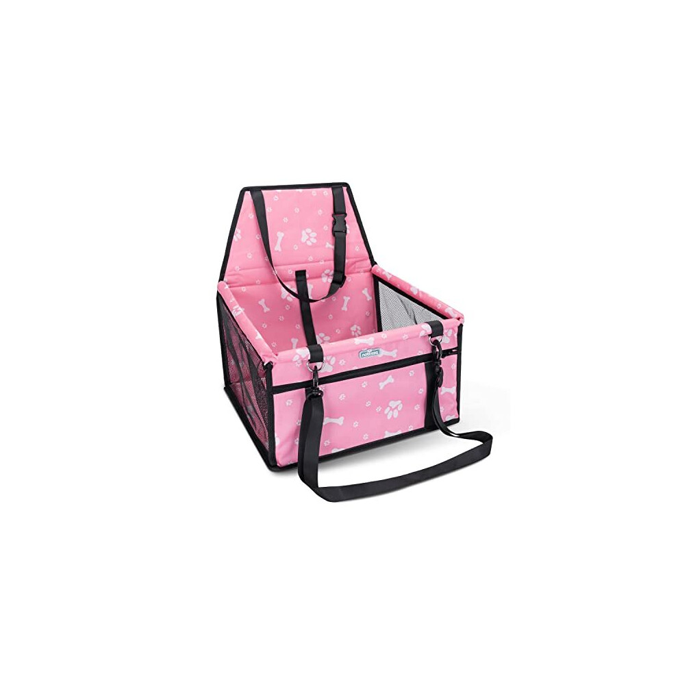 Nobleza Dog Car Seat, Waterproof Dog Booster Seat with Adjustable Headrest Strap and Reinforced Strap, Stable Foldable Car Seat for Little Small Cat Pet Travel, Pink
