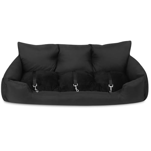KYG Extra Stable Waterproof Dog Car Seat - Non-Slip, Scratch Proof Booster for Medium Dogs up to 18 KG - With 4 Fastening Straps for Back Seat