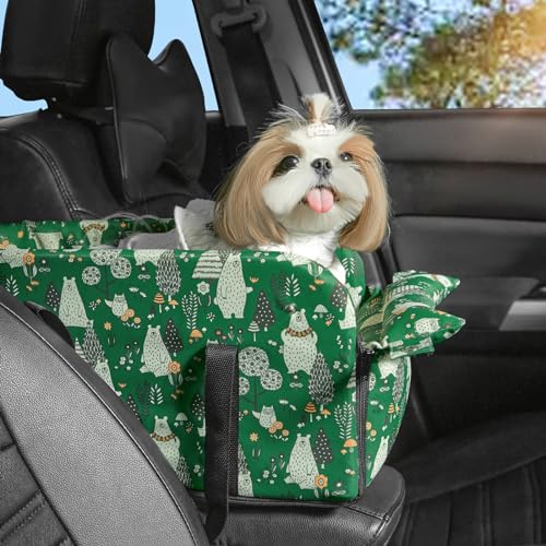 ROMROL Dog Car Seat for Center Console - Pet Booster Seat with Safety Belt & Non-Slip Base, Double Fixing System for Small Dogs Under 15 LBS, Portable Pet Bed, Green
