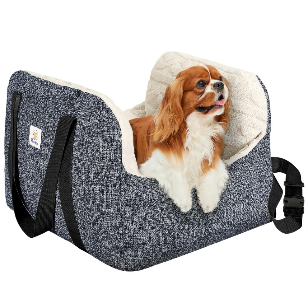 Pawaboo Dog Booster Car Seat for Small Dogs, Small Dog Car Seat with Fixed Buckle and Safety Leash, Thickened Dog Bed Car Seat, Pet Travel Carrier Bed