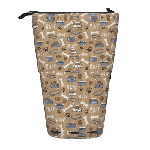 OTTKGGA Cute Dog Bone Bowl Woof Paw Stand Up Telescopic Pencil Case Stationery Organizer with Zipper Portable School Office Student