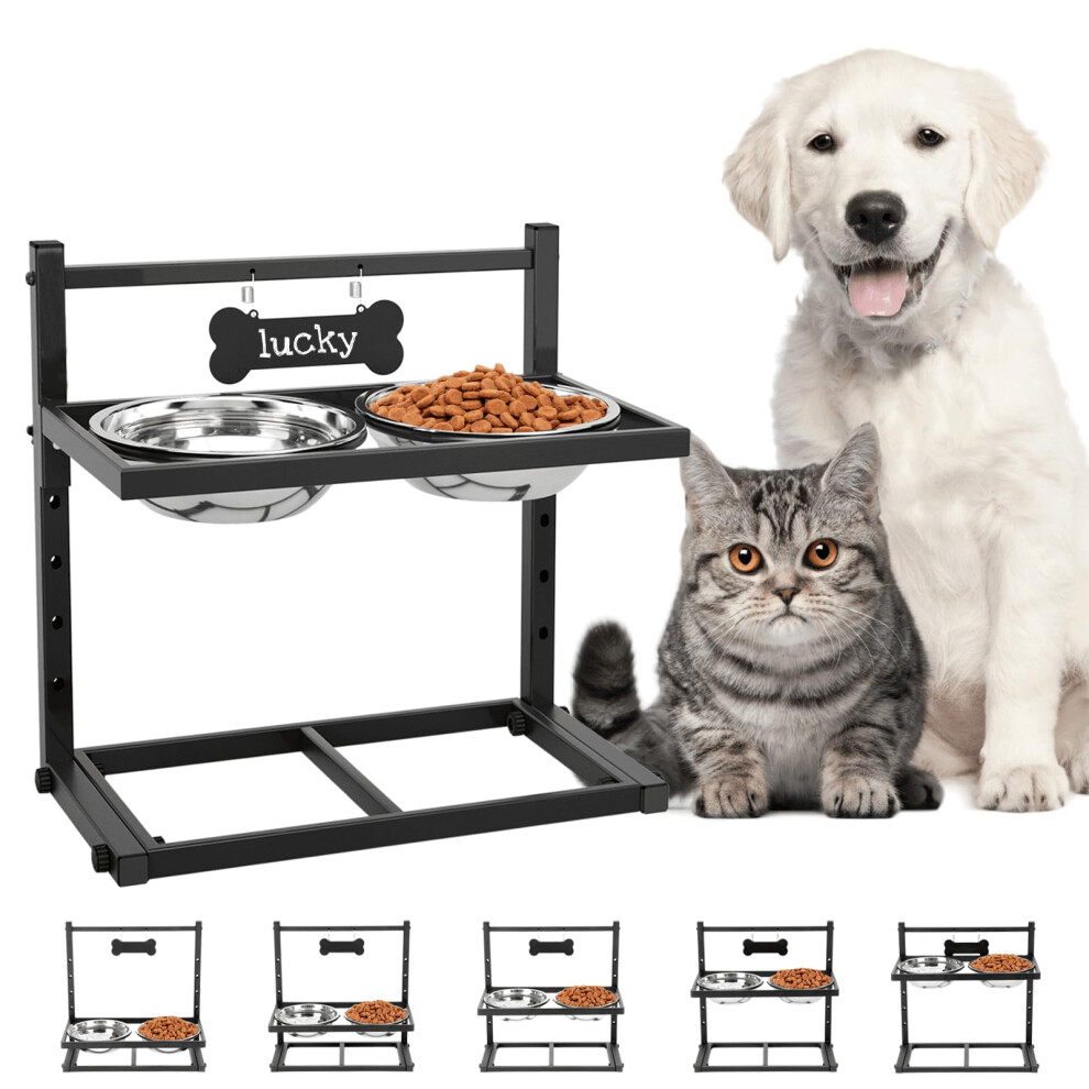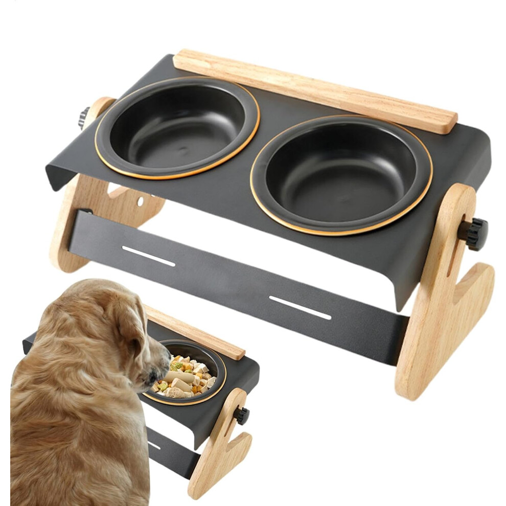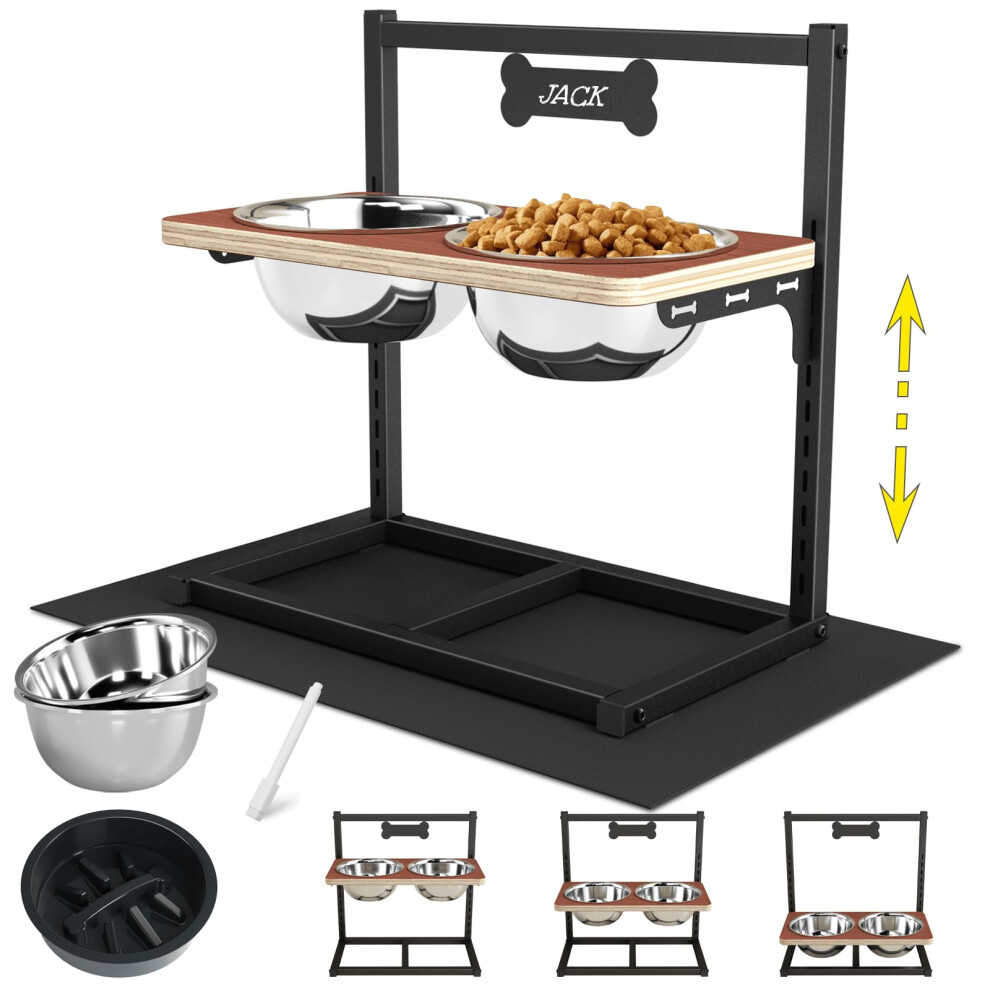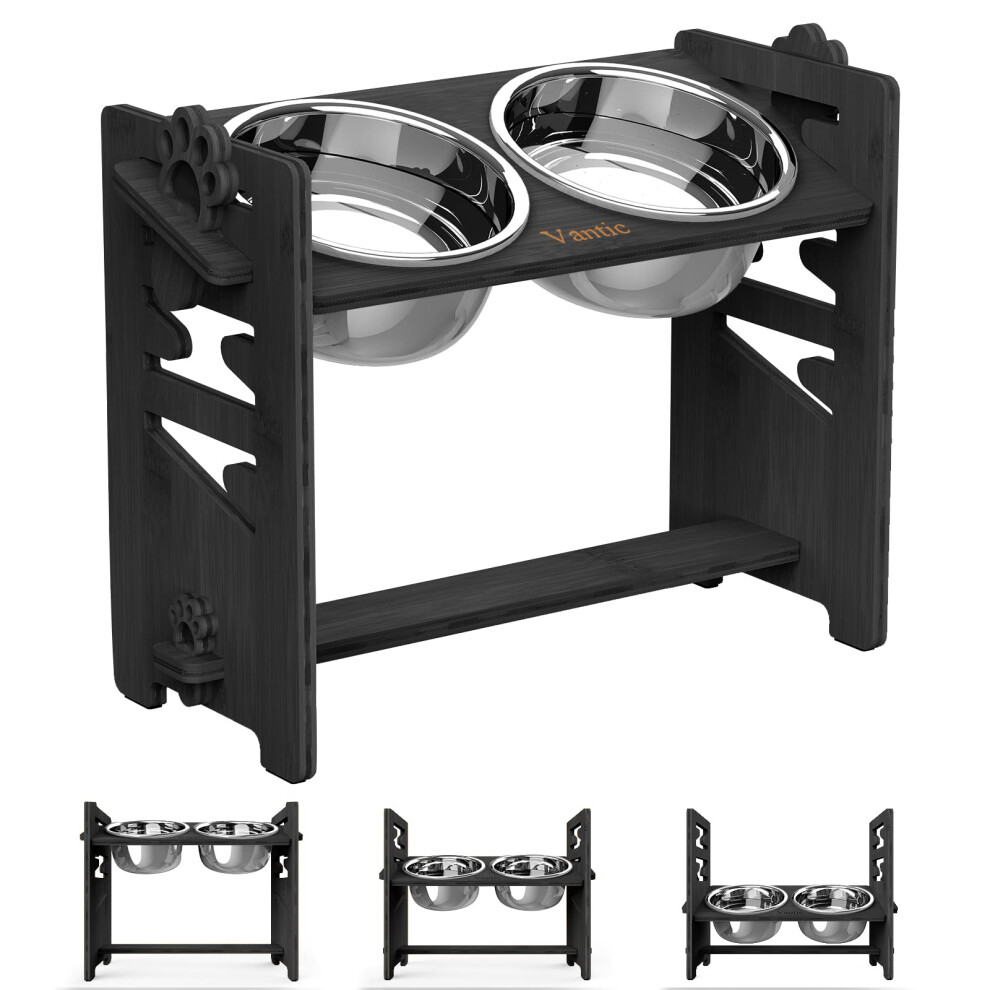 Vantic Elevated Dog Bowls Adjustable Raised Dog Bowl Stand for Large and XLarge Pet Sturdy Particle Board Food Feeder with 2 Stainless Steel Dishes