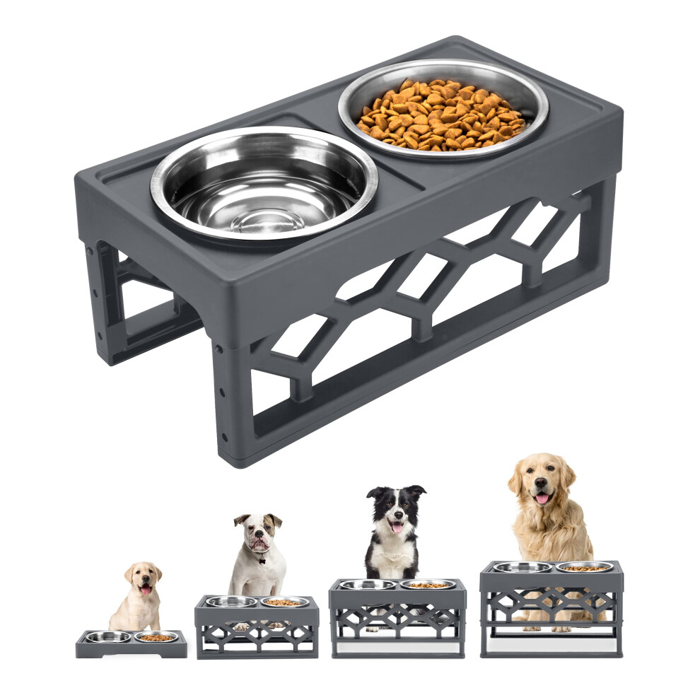 Elevated Dog Bowls Mess Proof Adjustable Raised Dog Bowl Stand Neck Guard Slip Resistant Dog Feeder for Medium and Large Dogs Grey