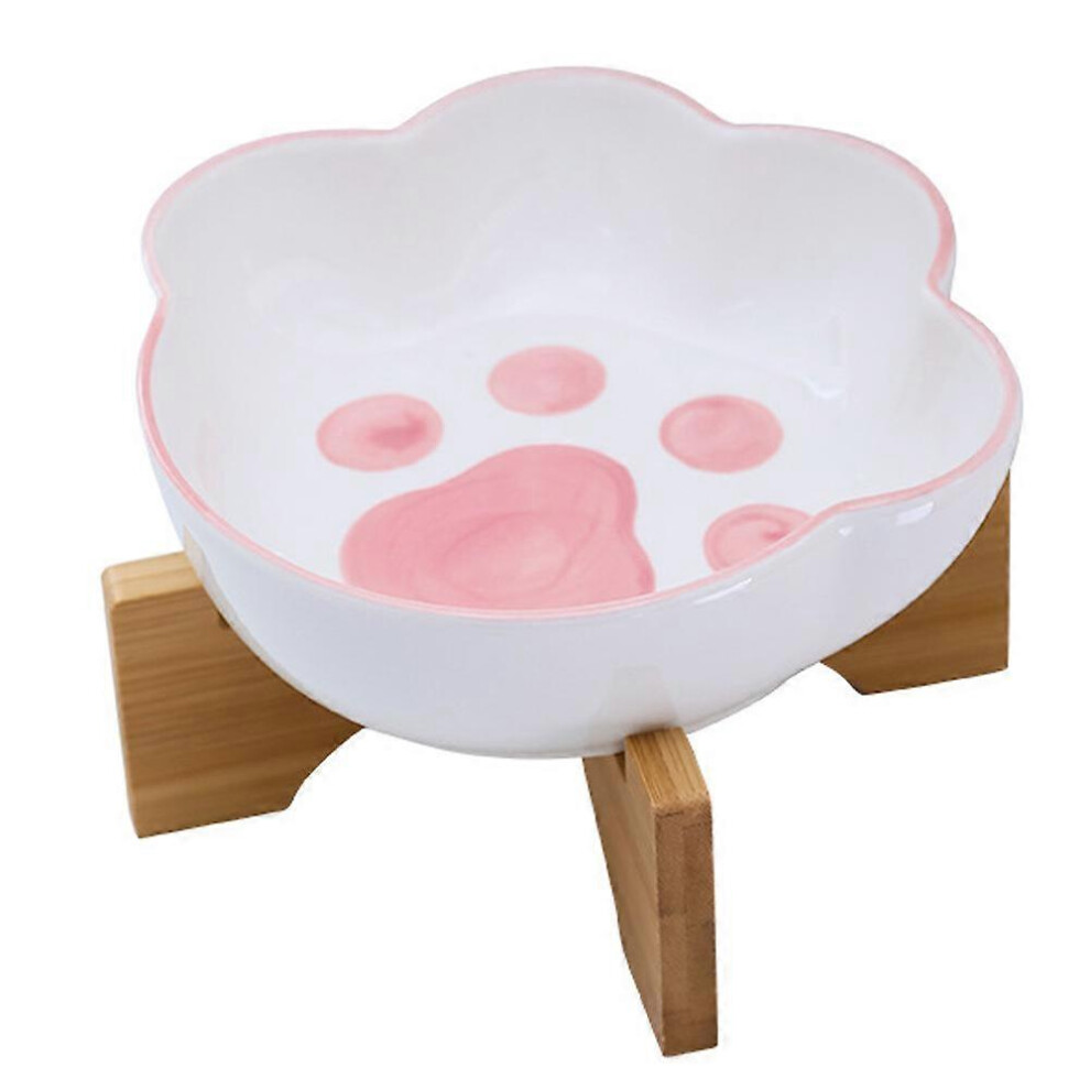 (pink, One size) Ceramic Cat Dog Food Bowl with Wood Stand Non-Slip Cute Food and Water Bowls