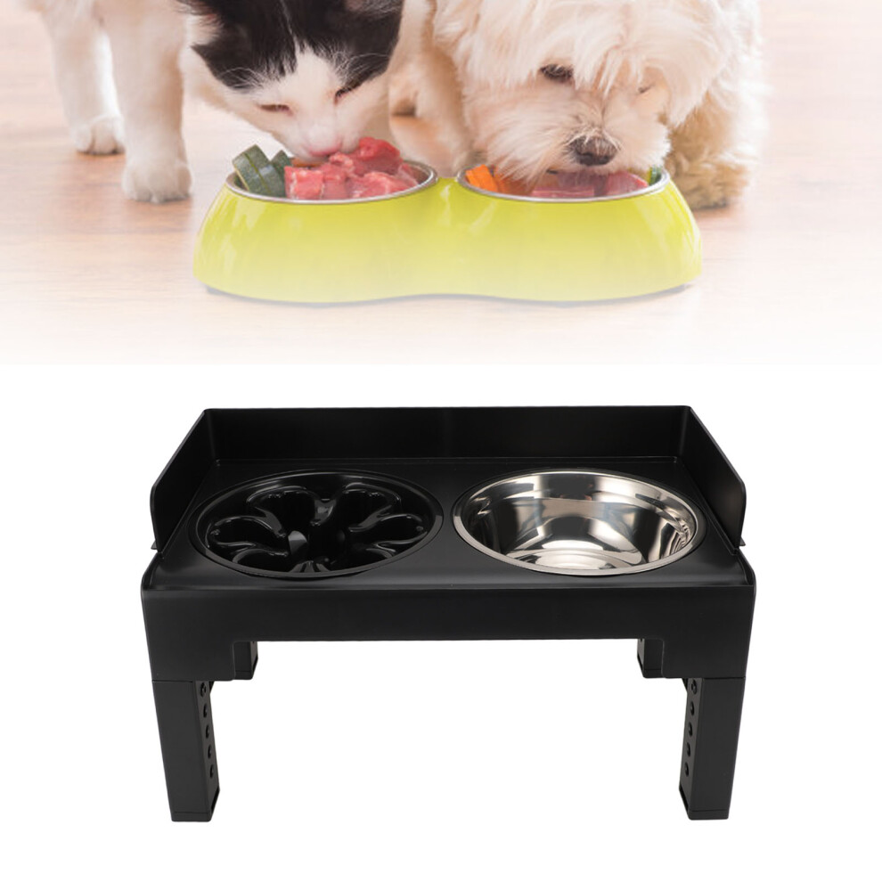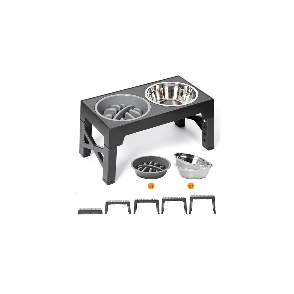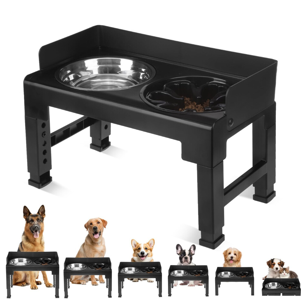 FOREYY Adjustable Elevated Dog Bowls with 2 Stainless Steel Bowls and 1 Slow Bowl, Raised Dog Bowl 5 Heights, Non-Slip Dog Food water Bowl Stand for