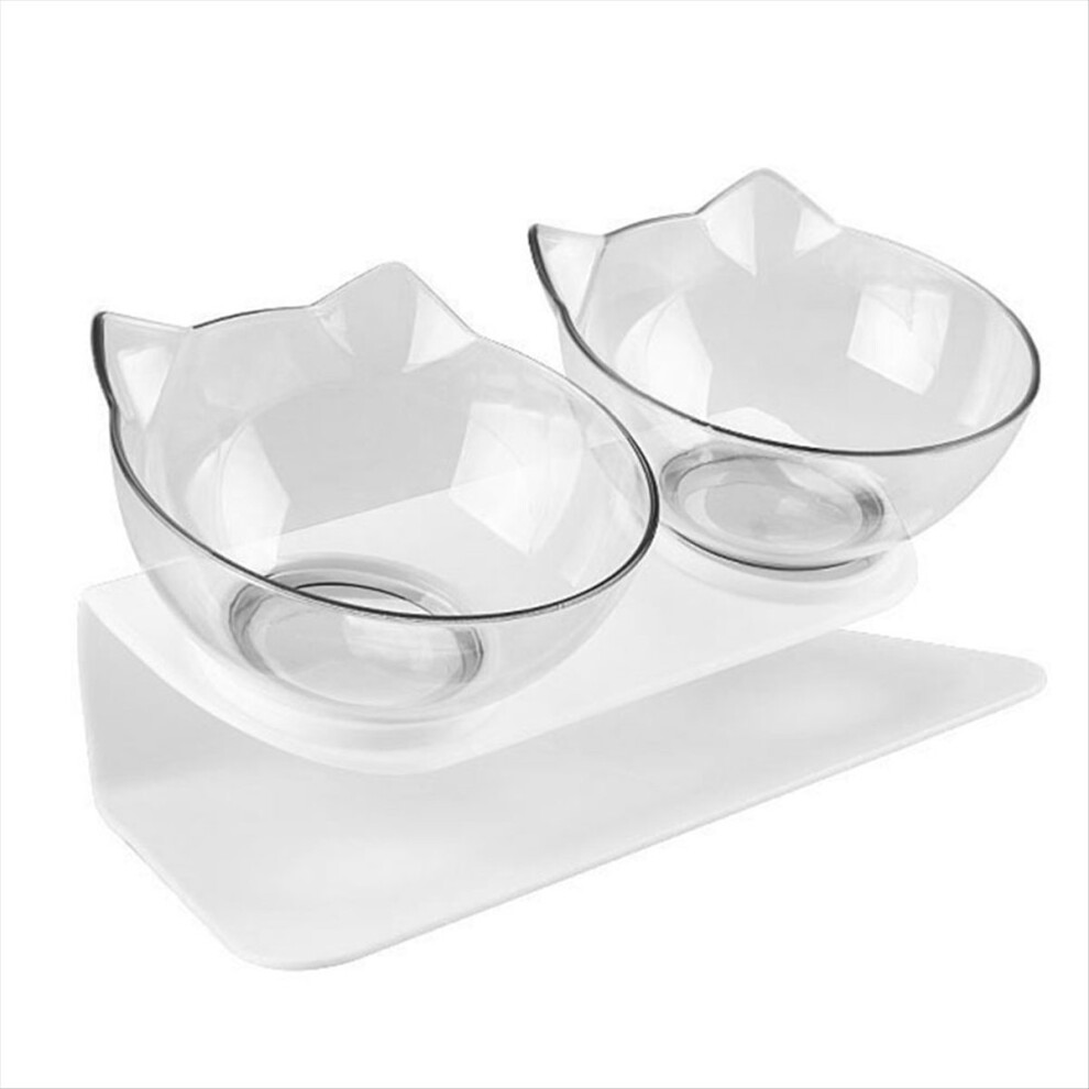 Anti-Slip Double Layer Cat Bowl and Dog Bowl with Stand Pet Feeding Water Bowl Pet Bowl Feeder Transparent