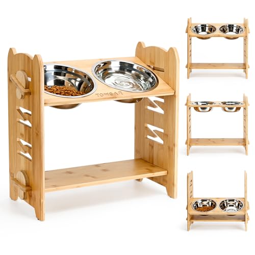 Vantic Elevated Dog Bowls - Adjustable Raised Dog Bowls for Medium and Large Dogs Durable Bamboo Dog Food Bowl Stand with 2 Stainless Steel Bowls and