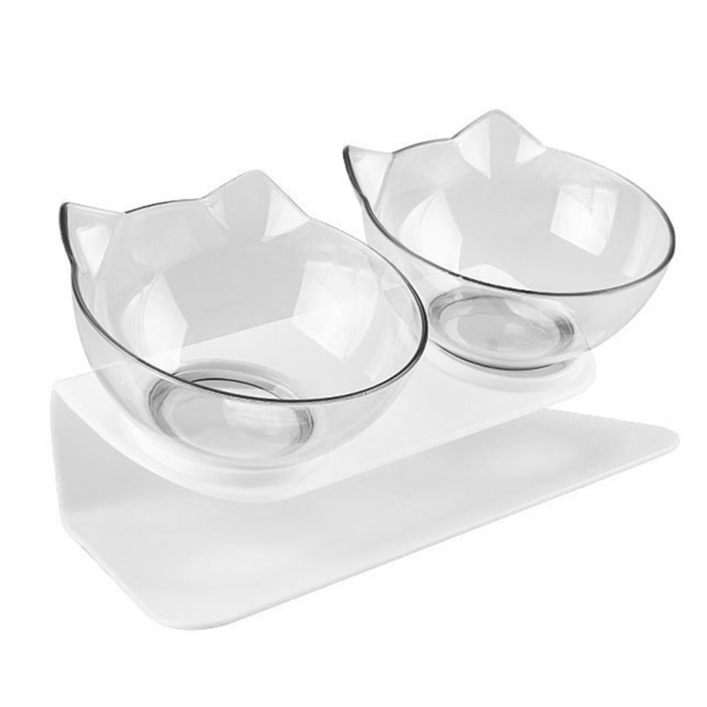 Anti-Slip Double Layer Cat Bowl And Dog Bowl With Stand Transparent
