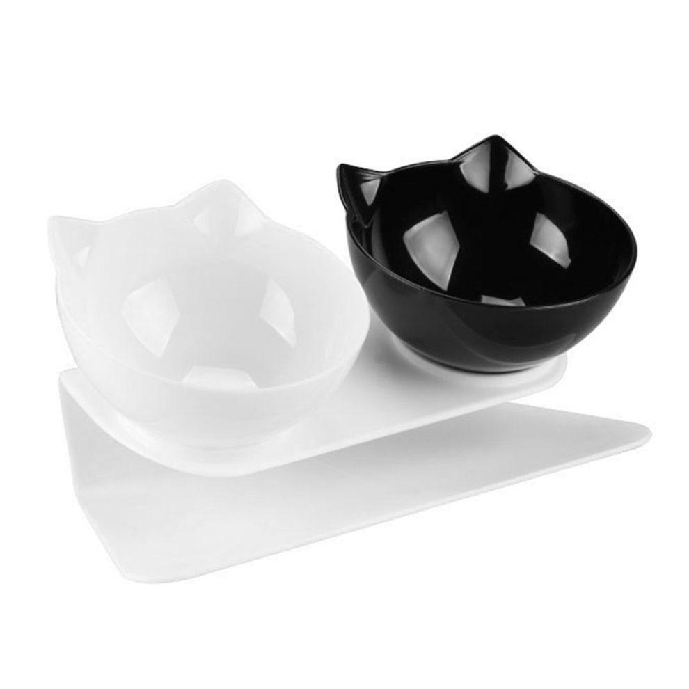 Anti-Slip Double Layer Cat Bowl and Dog Bowl with Stand Pet Feeding Water Bowl Pet Bowl Feeder Black & White