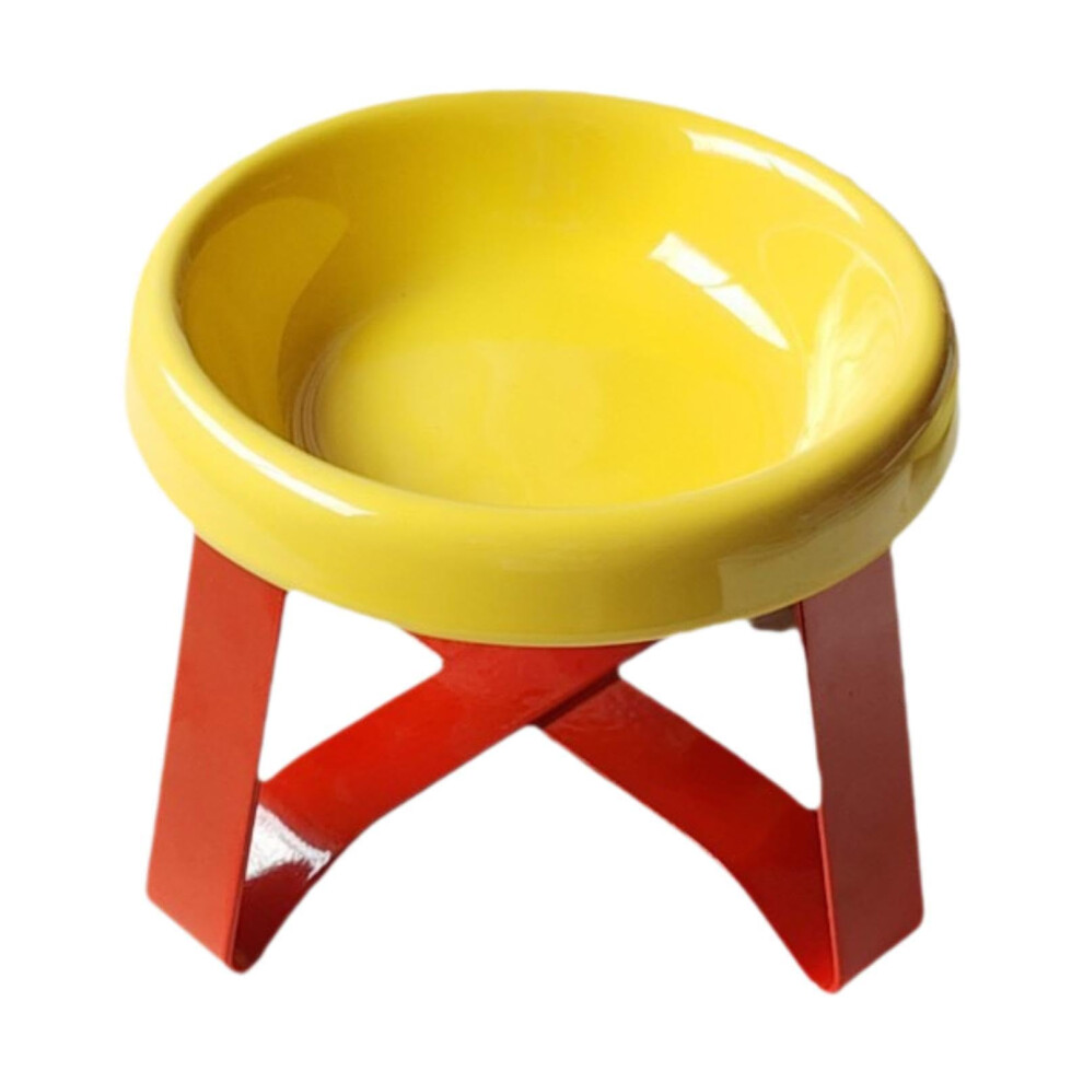 Dog Bowl Stand with Metal Stand and Ceramic Feeding Bowl for Puppies, Yellow Pet Snack Container, Adjustable Height