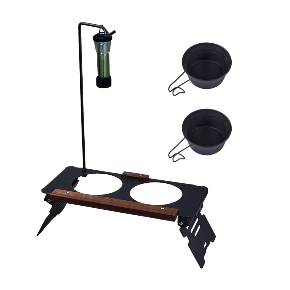 Elevated Dog Bowl Stand Metal With Lamp Rack For Camping Travel Outdoor Indoor Pet Feeding And Watering Station