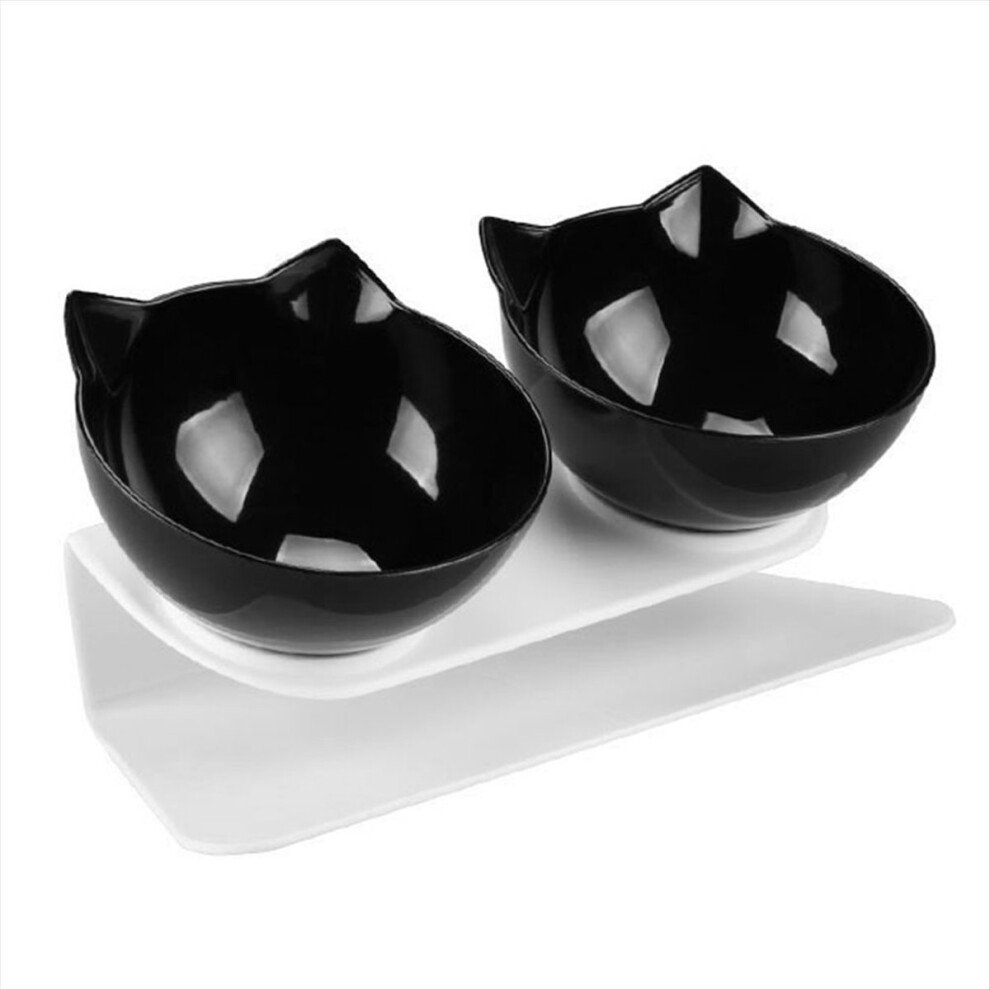 Anti-Slip Double Layer Cat Bowl and Dog Bowl with Stand Pet Feeding Water Bowl Pet Bowl Feeder Black