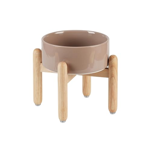 Havniva Ceramic 7.3inch Raised Dog Bowl Set, Elevated with Wooden Stand, Food and Water Bowl for Medium Breed Dogs, Weighted Dog Dishes, Pet Feeder(Brown Coffee)