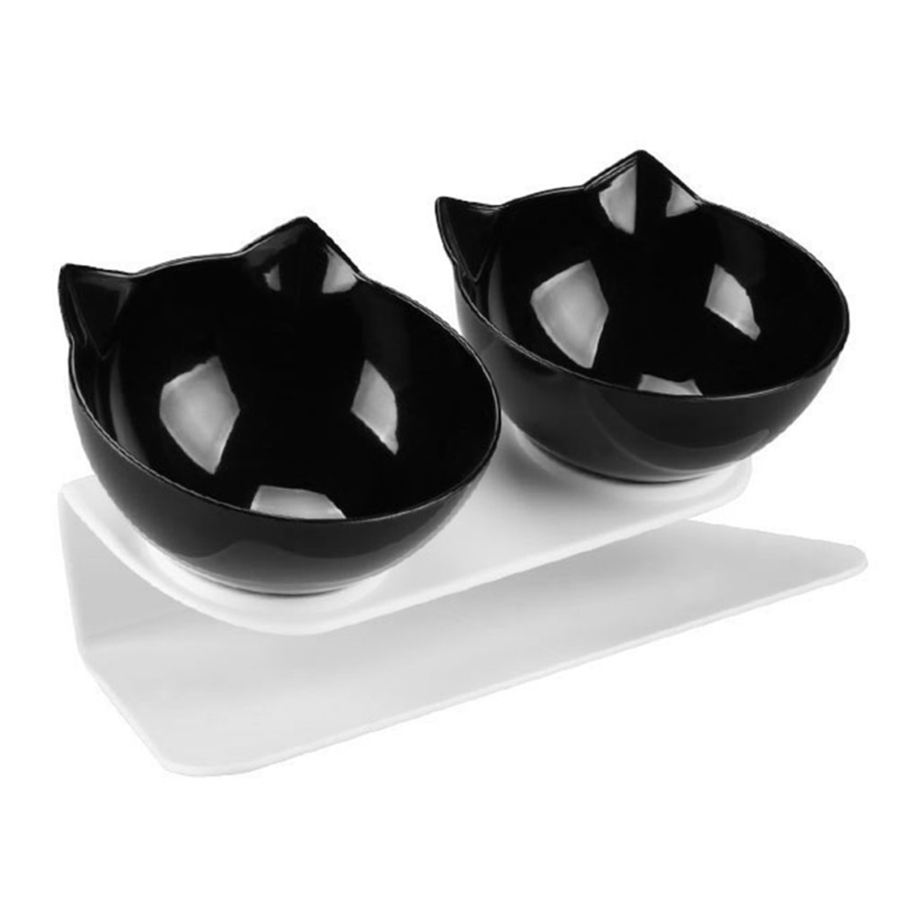 For Antislip Double Layer Cat Bowl And Dog Bowl With Stand Black White