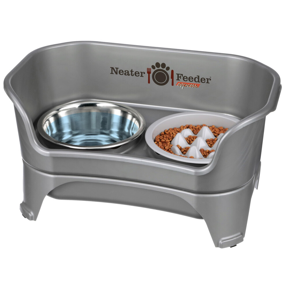Neater Feeder Deluxe Mess Proof Dog Bowls Elevated for Small Breed - Made in USA - No Spill Raised Dog Food Bowl Stand - Stainless Steel Food and Wate