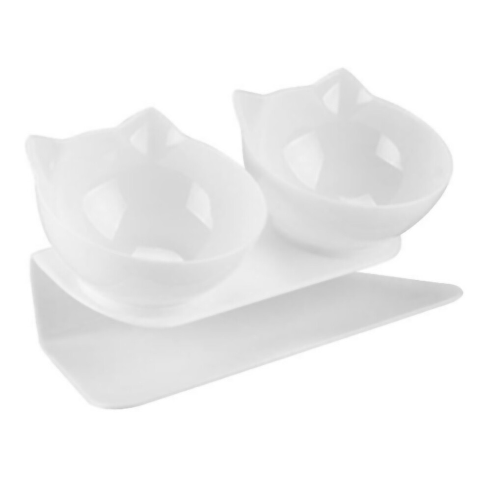 For Antislip Double Layer Cat Bowl And Dog Bowl With Stand White