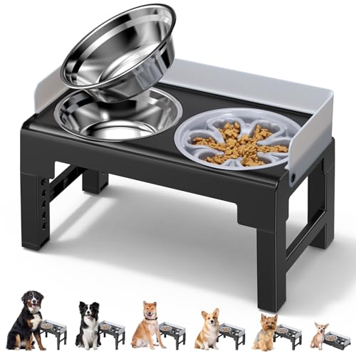 Petace Elevated Dog Bowls for Large Dogs, Raised Bowl Stand with 2 Slow Feeder & Stainless Steel Bowl, 5 Heights Adjustable Small