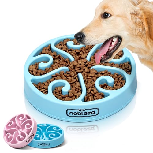 Nobleza 1 Pack Slow Feeder Dog Bowl Large, 20.4cm/8.03in Dog Food Bowls to Slow Down Eating, Pet Puppy and Cat Slow Feeder Bowl, Anti-Gulp Slow Feeding Pet Bowls, Blue