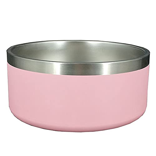 Gteller 304 Stainless Steel Double Wall Dog Bowls, BPA Free Non-Slip Pet Dishes,Cat Food& Water Bowl with Rubber Base No Spill (32oz, Pink)