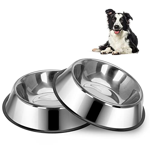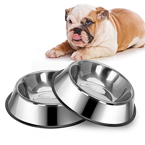 Nobleza 2 Pack Stainless Steel Dog Bowls Medium -500 ml, 21.5 cm/ 8.5 in Diameter Dog Bowl Medium Pet Water Food Feeding Bowl with Non Slip Base Pet Water Bowls for Dogs Cats