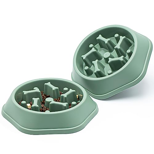 2pcs Dog Bowl Dog Slow Feeder Bowls Bloat Stop Food Bowl Interactive Puzzle Healthy Eating Bowl(2pcs,Green)