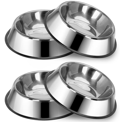 Nobleza 4 Pack Stainless Steel Metal Large Dog Bowls - 790ml, 25.3 cm/ 10 in Diameter Dog Water Food Feeding Bowls Large Pet Bowl for Dogs Pet Food Bowl with Non Slip Base