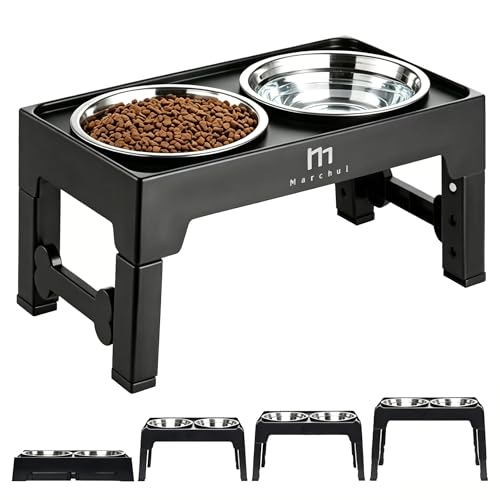 Marchul Raised Dog Bowls for Medium Large Dogs, Elevated Dog Bowls with 2*1200ML Stainless Steel Dogs Food Water Bowls, Dog Feeding Station with 4 Height Adjustable Dog Bowl Stand (9cm/23cm/27cm/31cm)