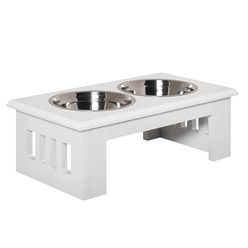 roomfitters Modern Pet Feeding Station Furniture with 2 Elevated Dog Bowls, Dog Proof Hidden Design, Tilt Out Dog Food Storage Cabinet, Pet Toy Storage Organizer, White
