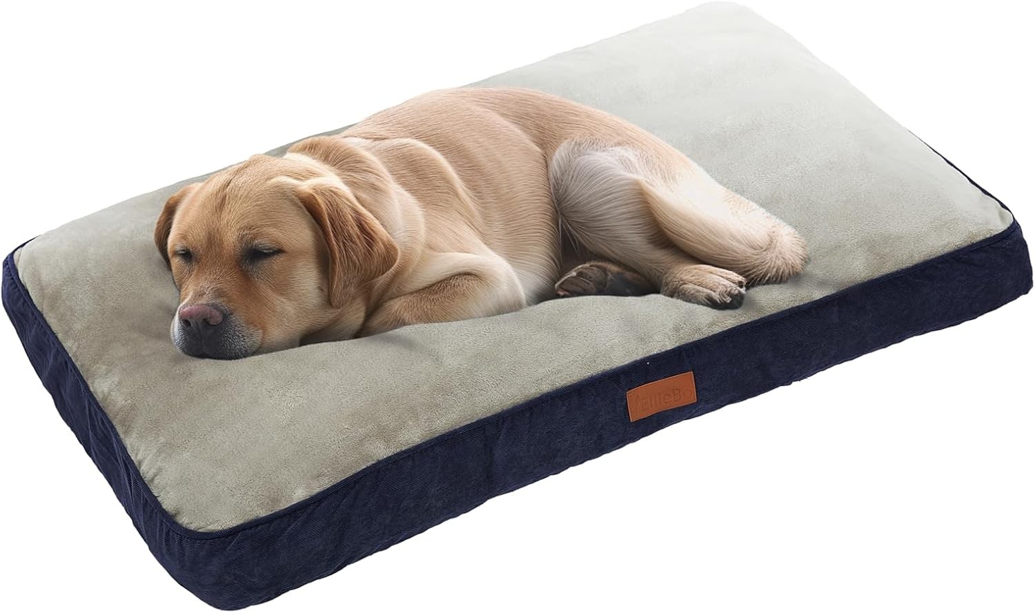 Ellie-Bo Large Dog Bed for 36-inch Dog Cage/Crate - Blue Corduroy/Grey FauxFur