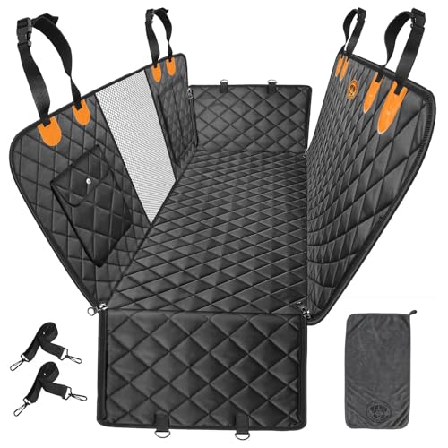 KYG Dog Hammock for Car Back Seats with Side Protection and Mesh Visual Window, Durable Scratch Proof and Waterproof Pet Seat Cover for Cars/Trucks/SUV, 135 x 148 cm, Black&Orange