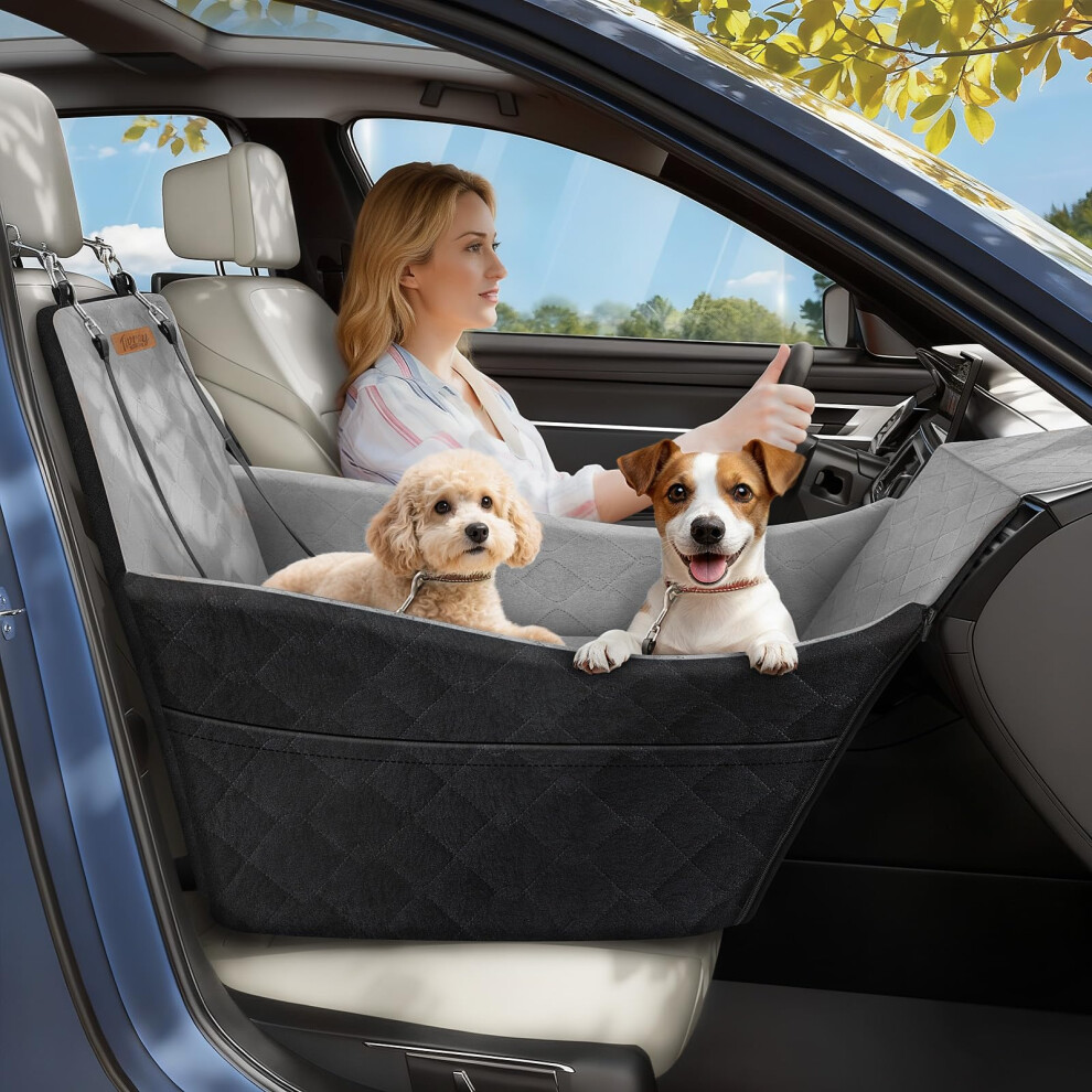 GL GLENSLAVE Dog Car Seat for Small/Medium Dogs Under 35lbs, Memory Foam Dog Booster Seats,Detachable and Washable Traval Pet Car Seat, Dogs Bed with 2 Safety Belts (Balck/Grey)